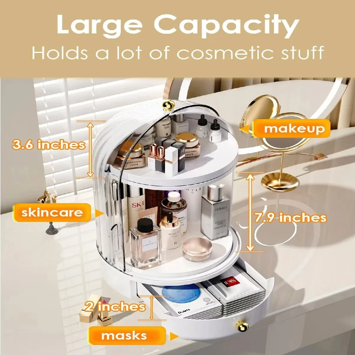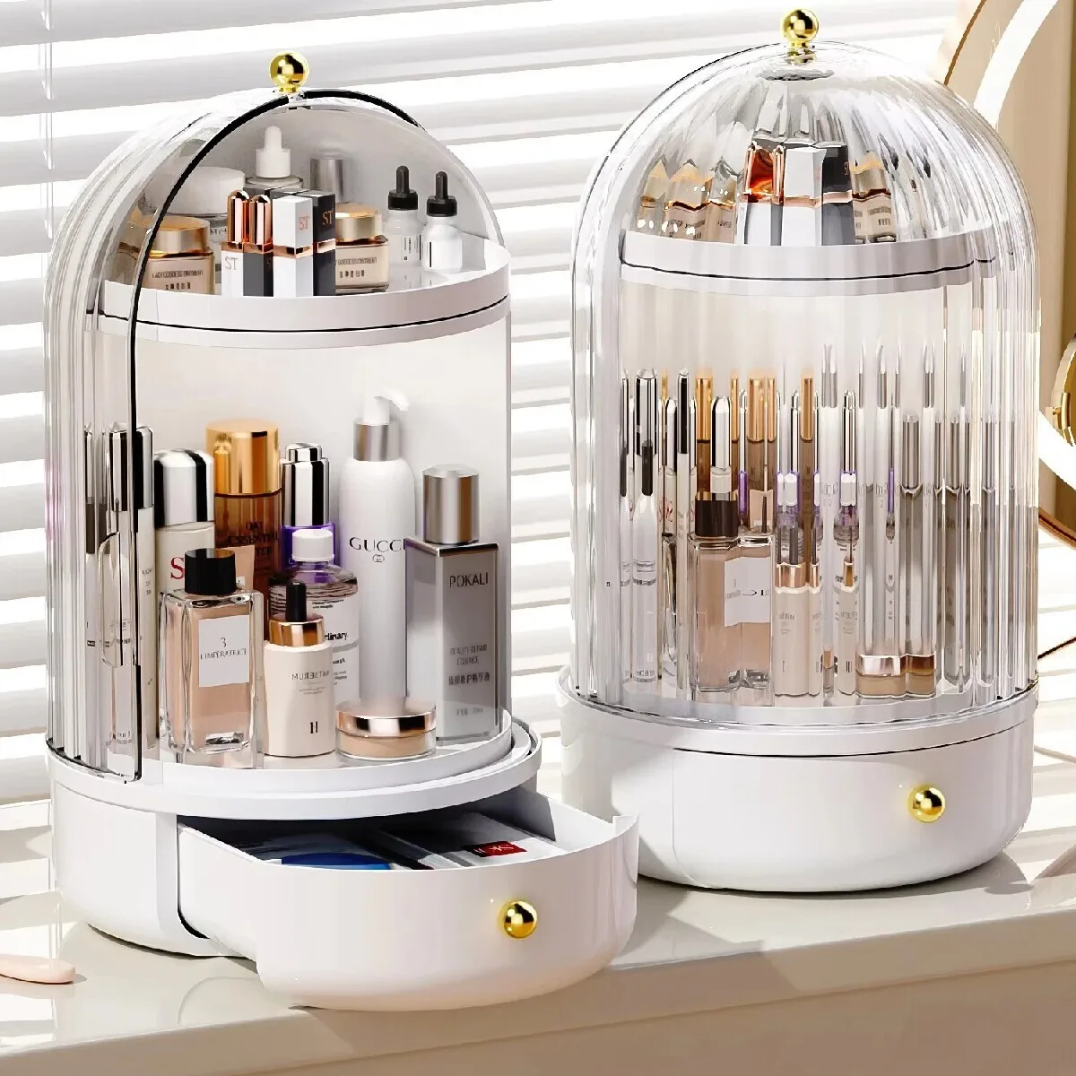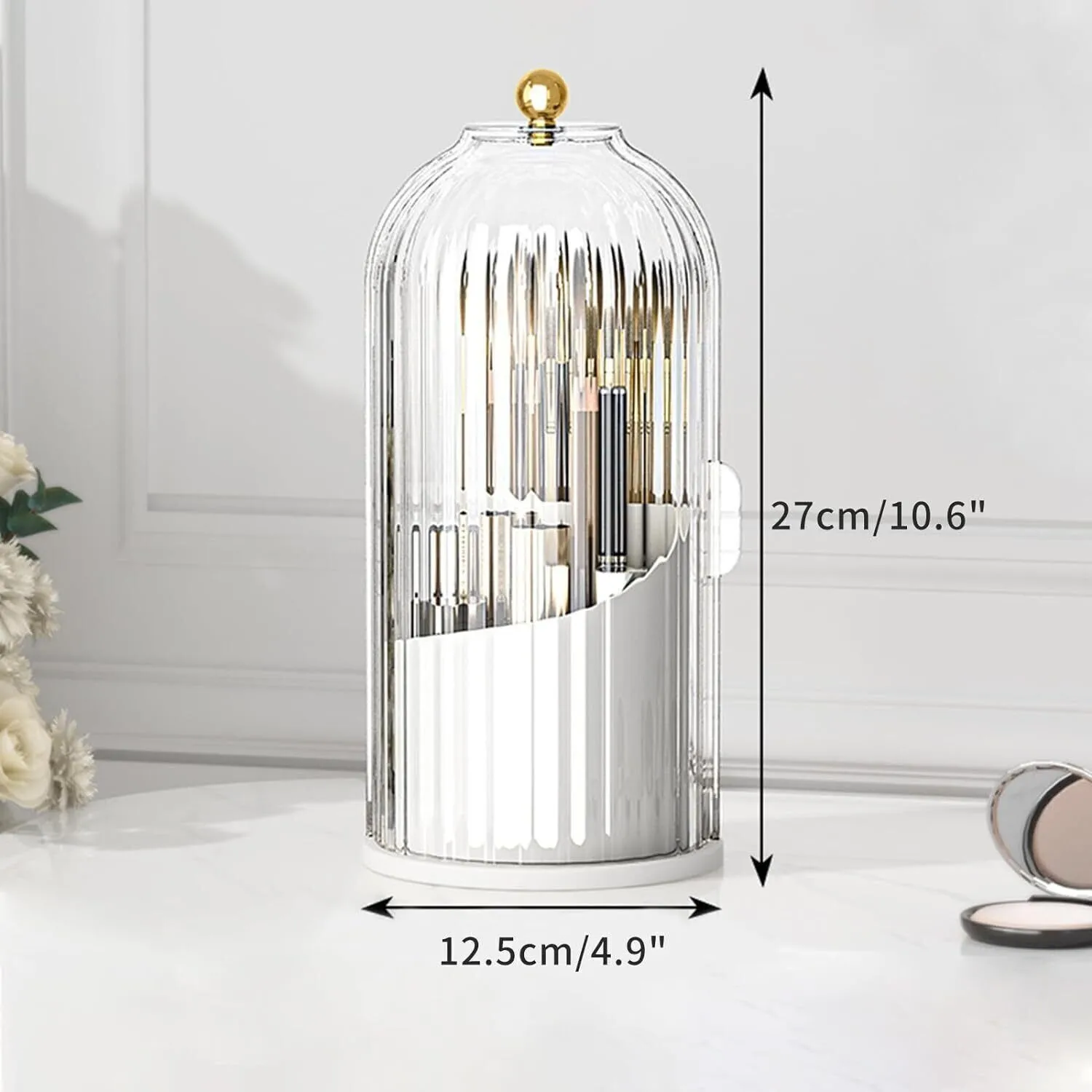 360° Rotating Makeup Brush Holder With Lid Cosmetic Organizer Storage Box